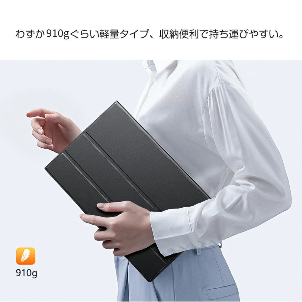 - 本体重量910g・厚さ約12mmの軽量・薄型設計で持ち運びが楽