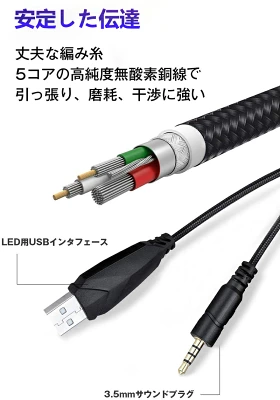 その他 | 7色呼吸LED / ノイズキャンセリングマイク / 2.1m ケーブル / 全指向性マイク / 120° 回転マイク |