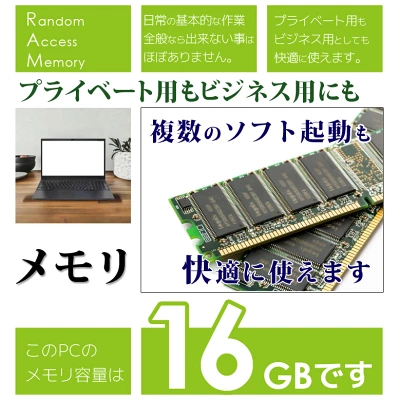 コストパフォーマンスを重視する方に適した中古ノートPC。1TBの大容量SSDと16GB RAM、オフィス互換ソフトのプリインストール、店長おまかせの機種選定が特徴。