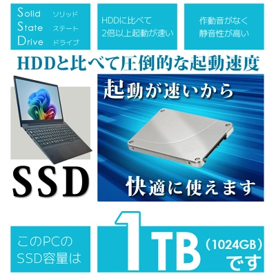 SSD | 512GB→大容量1TB(1024GB)にグレードアップ |